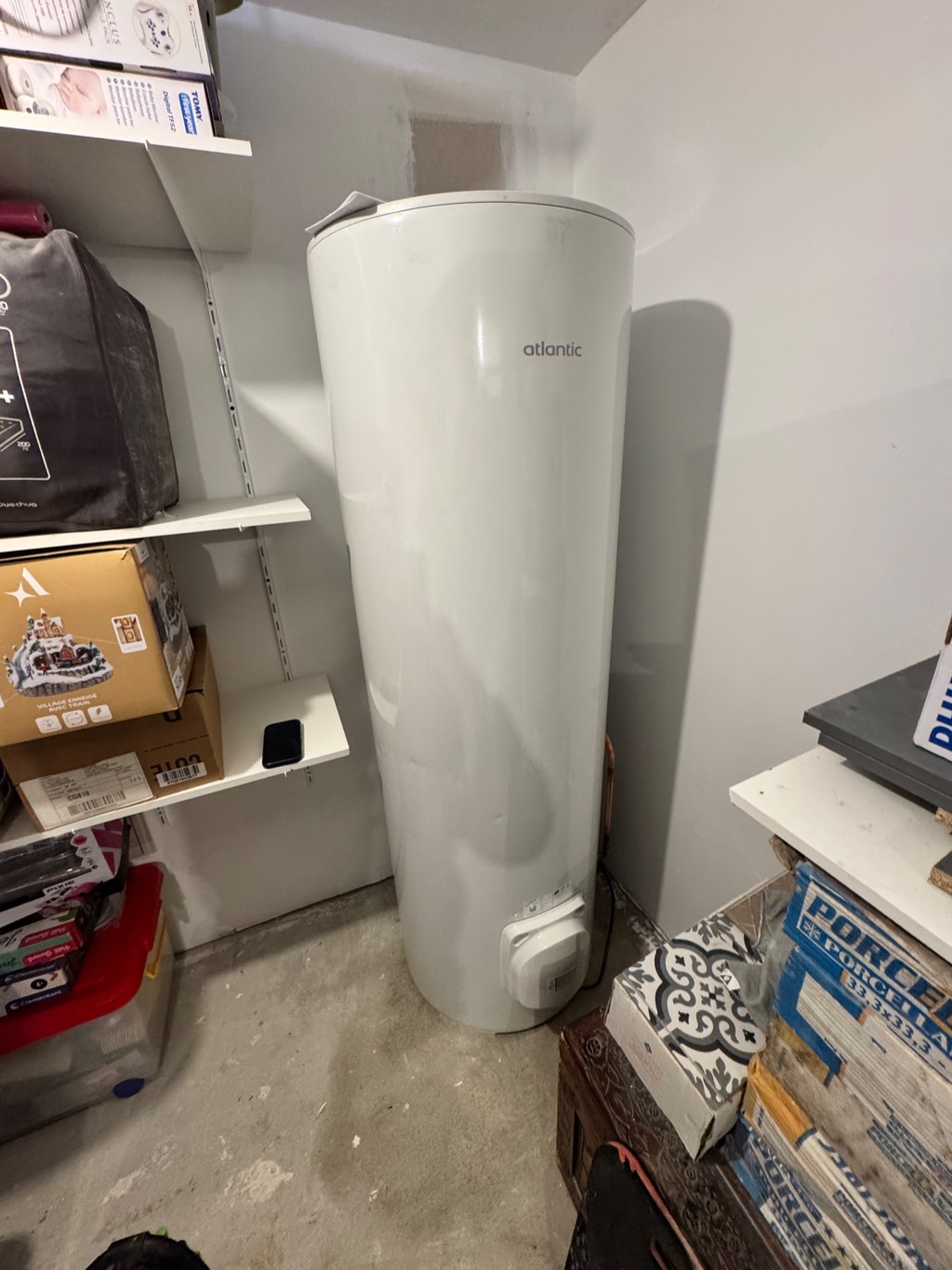 Après discussion avec le client, il s'est avéré qu'il ne disposait pas toujours d’assez d’eau chaude. Afin d’améliorer durablement son confort, nous avons pris la décision de remplacer le ballon de 200 litres par un modèle Atlantic de 300 litres, plus adapté à ses usages quotidiens.